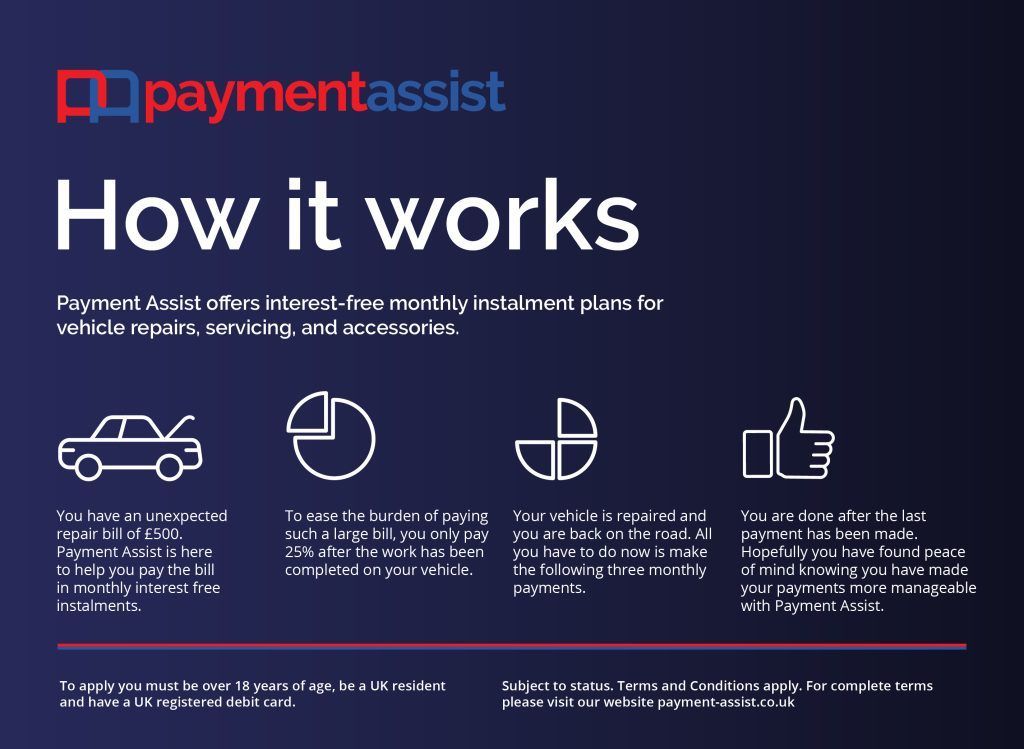 We have all had an unexpected bill, but here at Autosave we have partnered with Payment Assist, whereby you can split your bill, making it easier for you to spread your costs thus keeping you on the road. We have an example of how it works below.